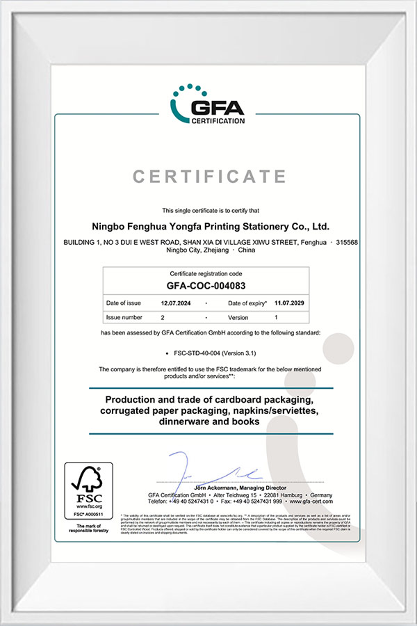 READ MORE中国宁波(2024 年 5 月 23 日)– 总部位于宁波凤凰城的专业纸制品制造商永发印刷文具有限公司今天宣布,将可持续发展置于其全球业务战略的核心。该公司致力于通过三项关键举措减少对环境的影响:到 2025 年为其主要产品线实现 100% FSC 或 PEFC 认证的可持续纸浆,全面过渡到安全且可生物降解的水性油墨,并增加研发投资以扩大其工业可堆肥纸杯和盘子的范围。此举响应了全球客户对环保...